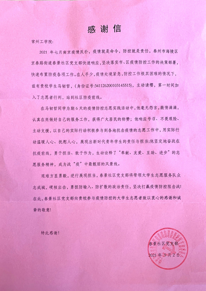 近日,航空与BBIN宝盈集团/飞行学院陆续收到来自员工家乡政府的感谢信和表扬信。信中对公司学子积极参与暑期疫情防控志愿工作给予了高度评价,向公司表达了诚挚的感谢。
