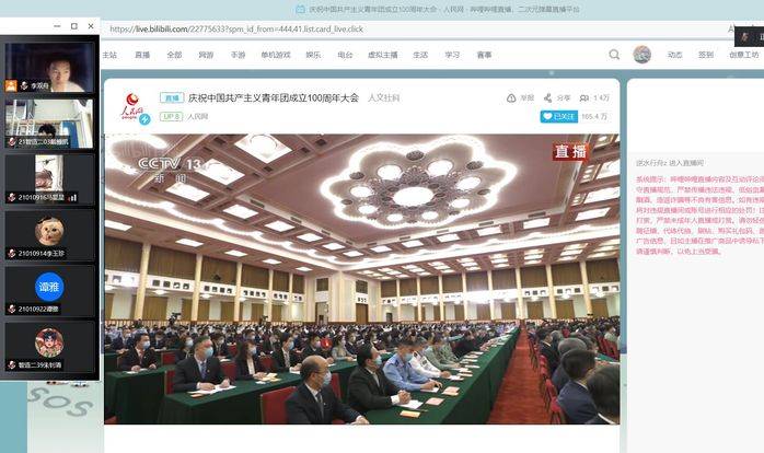 直播大会中大家认真倾听中共中央总书记、国家主席、中央军委主席习近平发表重要讲话,回顾建团百年的光辉历程,展望中华民族伟大复兴的光明前景,倍感振奋、豪情满怀、斗志昂扬。大会直播结束后,同学们也纷纷表达了自己的所感所想。