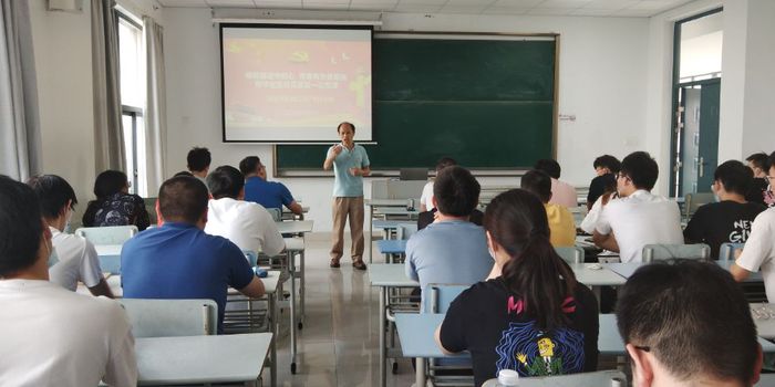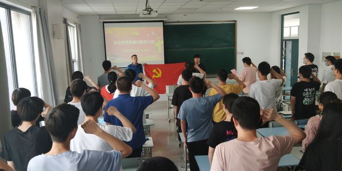 党课分为两个环节。在第一个环节,冉育彭从三个方面结合今年以来的国际国内时事政治给毕业生党员讲解了本次党课。第一,要求他们继续加强政治理论学习,要学原理、求真理、悟道理、明事理,从而坚定理想信念,做到思想进步、政治可靠,努力成为党的可靠接班人。第二,要随时注意党员身份,树立党员旗帜形象,始终发挥先锋模范作用,做政治上的明白人。第三,在以后的工作和学习中继续精益求精,时刻保持优秀,争当先锋表率,成为新时代中国特色社会主义事业的合格建设者。在第二个环节,全体党员起立,紧握右拳,面对党旗,铿锵有力地重温了入党誓词,以此勉励大家时刻不忘初心,勇担使命。