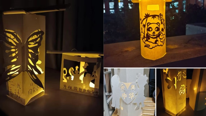 刻灯照前路,纸中话传情。有了一定的体悟之后,同学们在白纸上刻画出出各种栩栩如生的图案与文字,传达心中所思所感。灯笼作为一种传统工艺品,而白灯笼也是纪念、缅怀的象征,我们希望明亮的灯笼,可以照亮先辈们的归家路。最后,我们每个人都在纸上写了一句想对先烈们说的话,衷心表达我们今人对他们的感谢与怀念。