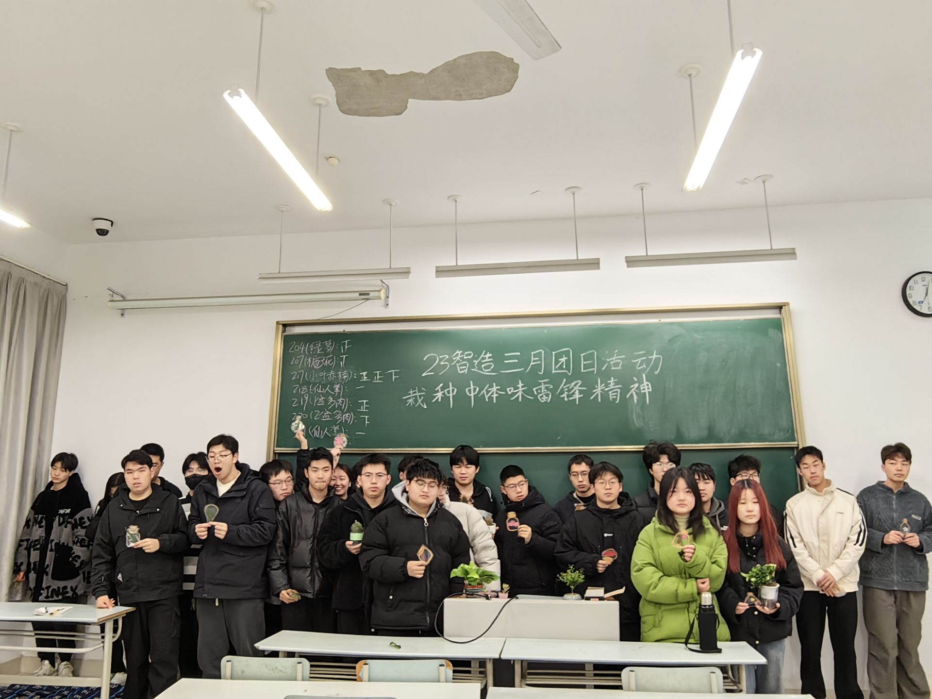为传承雷锋精神,培养环保意识,2024年3月20日,23级智造团支部在天璇楼B203开展“栽种中体会雷锋精神”主题团日活动。23级智造班全体同学参加。