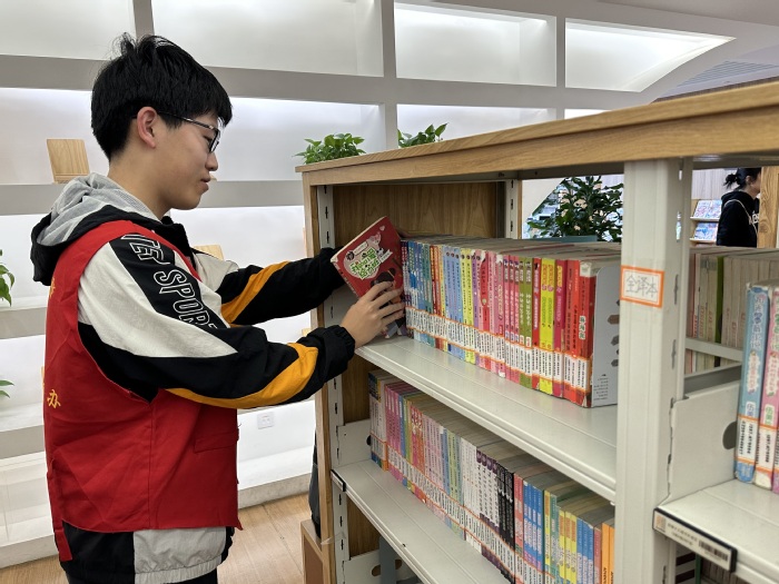 扬青春劳动之色彩。活动前,班级团支部与常州市图书馆进行了对接和预约,组织班级同学前往常州市图书馆担任少儿部志愿者。活动当天,支部团员在图书馆集合并接受了简单的岗前培训,在对图书归类、如何办理借阅证、如何与幼儿进行沟通交流有了基本了解后,同学们热情满满走上了志愿者服务岗位。志愿服务过程中,大家精神十足,一丝不苟。志愿者们在一排排书架之间,将一本本书籍归类,希望有需要的读者能及时借阅;在不同年龄段的分区之间,维持着各个分区的秩序,保证借阅者能学习到自己年龄对应的知识;在一个个稚嫩的脸庞中间,热情地与他们交流,引导他们找寻所需书籍。
