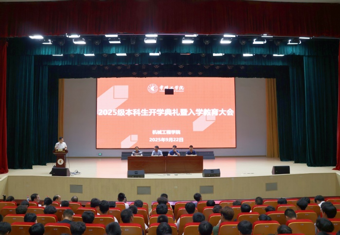 典礼第二阶段为新生入学教育环节。尹飞鸿书记在讲话中首先强调,新生要“赢在起跑线”,充分认识机械学科的重要性,树立“以机械为荣、为机械增光”的信念,明确大学阶段的奋斗目标与计划。