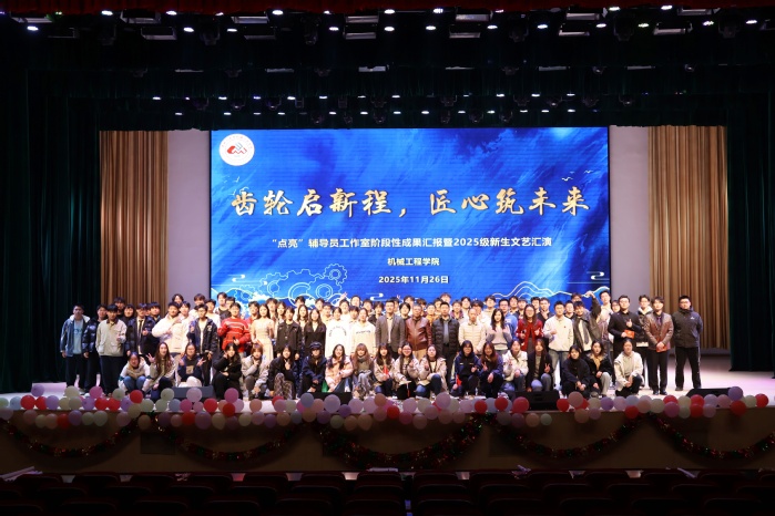 11月26日晚,BBIN宝盈集团在文化艺术中心隆重举办“齿轮启新程,匠心筑未来”点亮辅导员工作室阶段性成果汇报暨2025级新生文艺汇演。学院全体党政领导、系部主任、新生班班主任、辅导员和全体25级本科生和研究生共同参加了这一盛会。