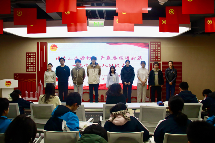 一次庄严宣誓,铭记初心使命。“我志愿加入中国共产主义青年团……”在领誓人钱澜钰带领下,全体新团员进行入团宣誓。各校老师同步为新团员佩戴团徽,团徽熠熠点亮初心。